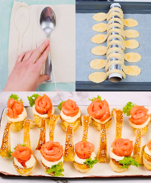 INGREDIËNTEN 2 rollen bladerdeeg 1 eierdooier 60 ml melk Sesamzaadjes voor garnering 100 g roomkaas 12 plakjes gedroogde zalm Slablaadjes PROCEDURE 1. Verwarm de oven… Weiterlesen »Bladerdeeglepel met kaas en zalm: je aperitief nog specialer!